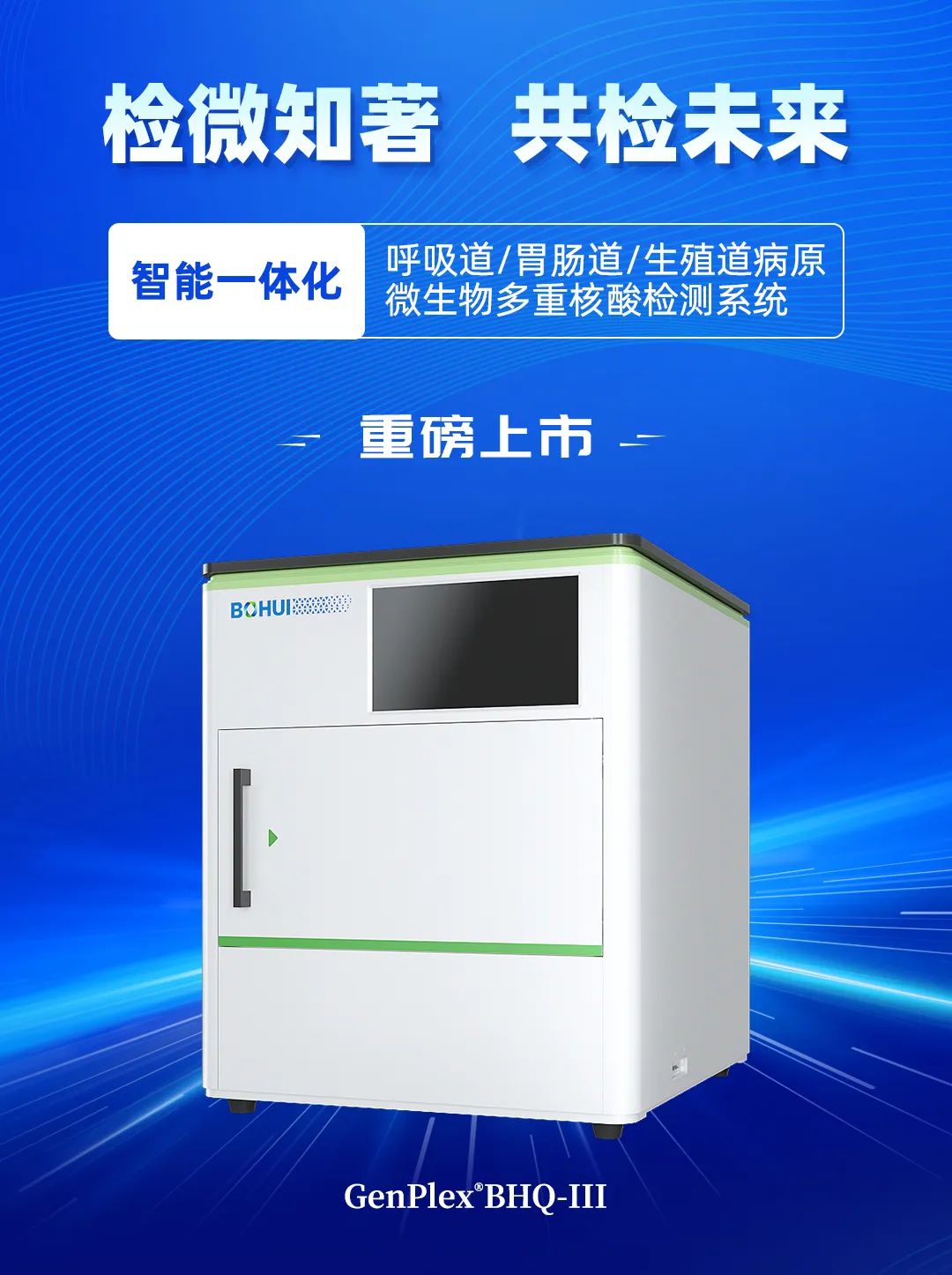 隨著倒計時的響起,博暉創(chuàng)新全場景呼吸道多病原聯(lián)檢解決方案暨微流控全自動多病原核酸檢測分析系統(tǒng)(BHQ-III)震撼上市。這一科技創(chuàng)新的里程碑標(biāo)志著博暉創(chuàng)新在分子診斷領(lǐng)域邁出了堅實(shí)的一步,將攜手各界共同開啟分子診斷的“芯”篇章。
