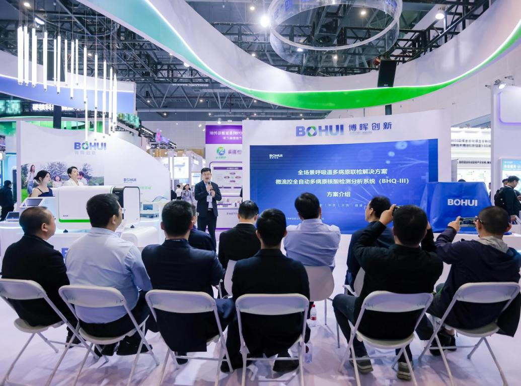 博暉創(chuàng)新全場景呼吸道多病原聯(lián)檢解決方案發(fā)布會于3月22日上午10點(diǎn)在3-C0903展臺圓滿召開。此次發(fā)布會匯聚了來自科技、醫(yī)療、公共衛(wèi)生等領(lǐng)域的眾多領(lǐng)導(dǎo)、專家和同仁,共同見證了博暉創(chuàng)新在分子診斷領(lǐng)域的最新成果——微流控全自動多病原核酸檢測分析系統(tǒng)(BHQ-III)的盛大發(fā)布。